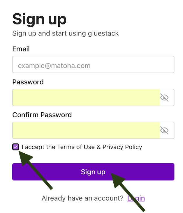 You will then be prompted to give your email address, pick a password and accept the terms of use and privacy policy. Once all your details are filled in, select "Sign up". ![]() This will create your account and direct you to the Matoha App homepage. |