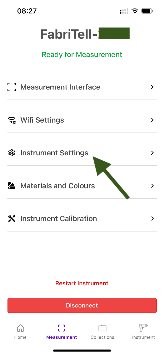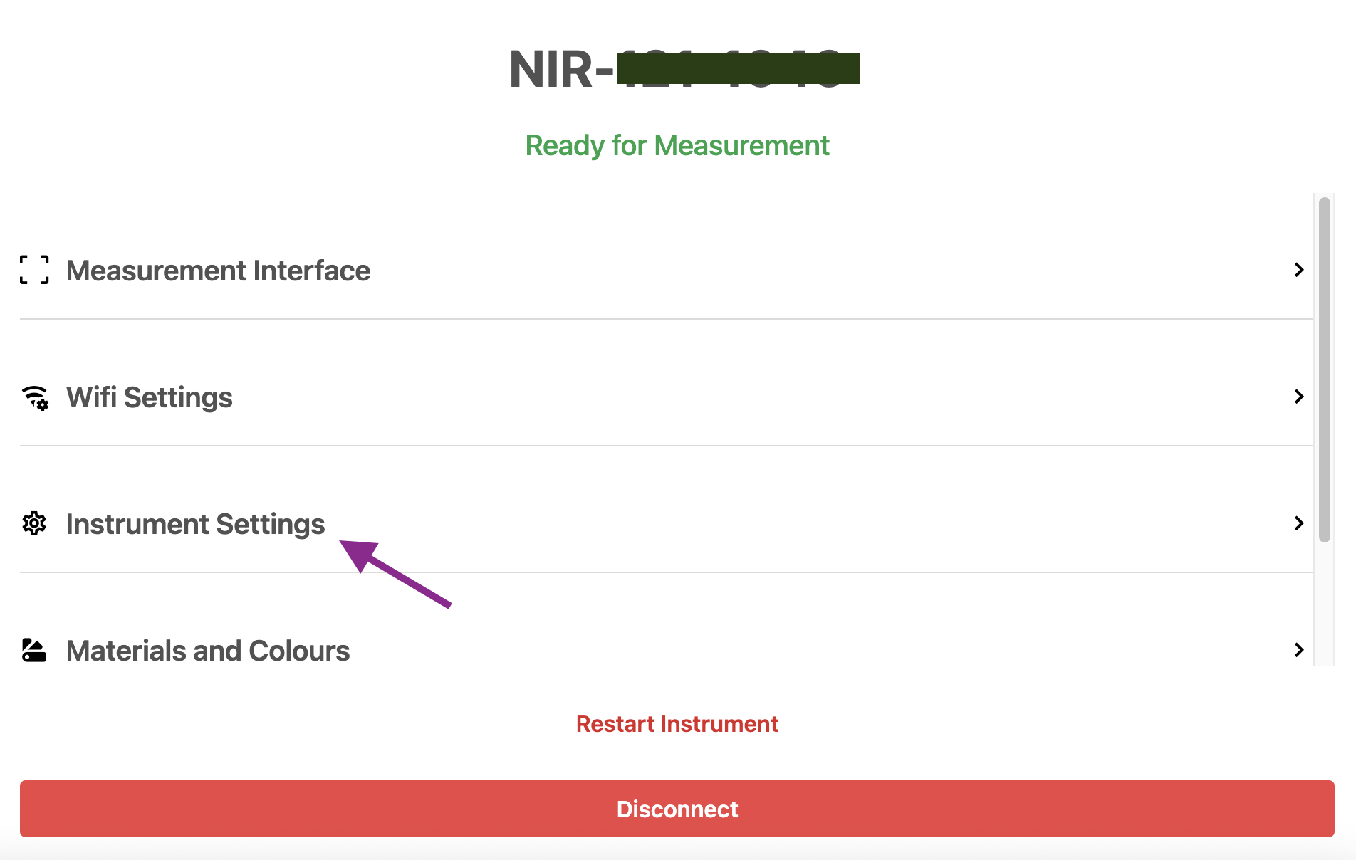 | Once your Matoha device is connected to the Matoha app, select "Instrument Settings".