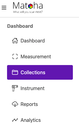 5. Scroll to the bottom, name your new material and click on "Add". You can add several new materials and when ready, click on "Done". | 1.Click on "Collections" from the left side menu.