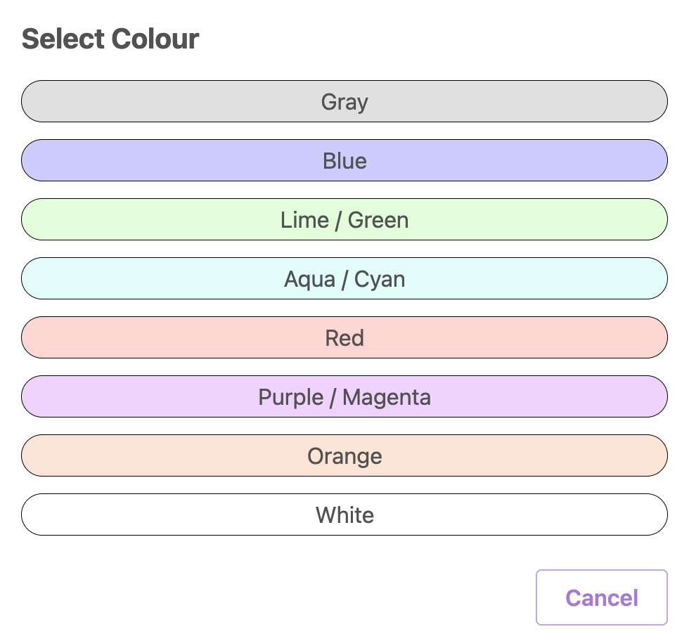 To make your spectrometer LED show a specific colour for a particular material, tap on the current LED colour and choose the colour you want.